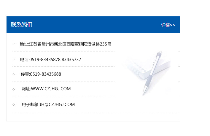 傳真:0519-83435688    郵編:213135    網址:WWW.czjhgj_com.gd-blackcat.com    電子郵箱:JH@czjhgj_com.gd-blackcat.com